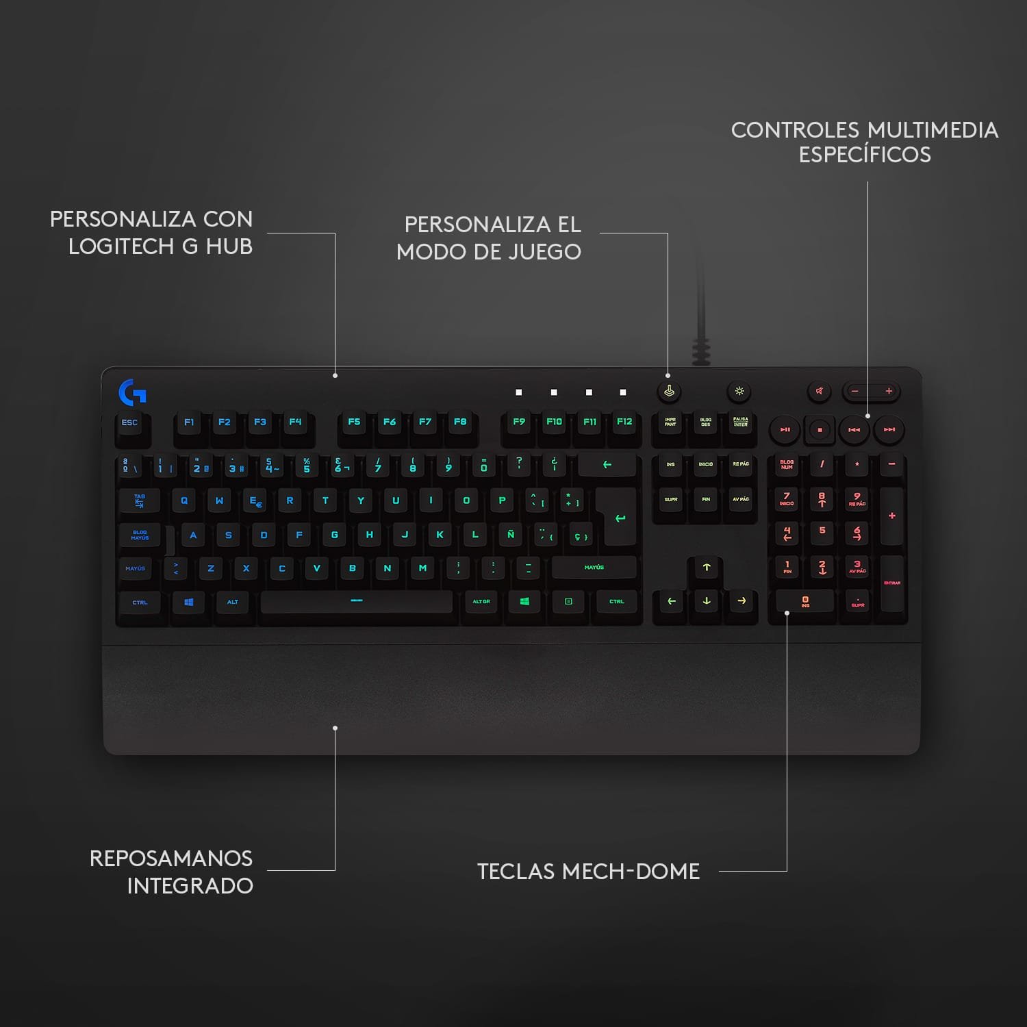 Reposamanos integrado y patas ajustables